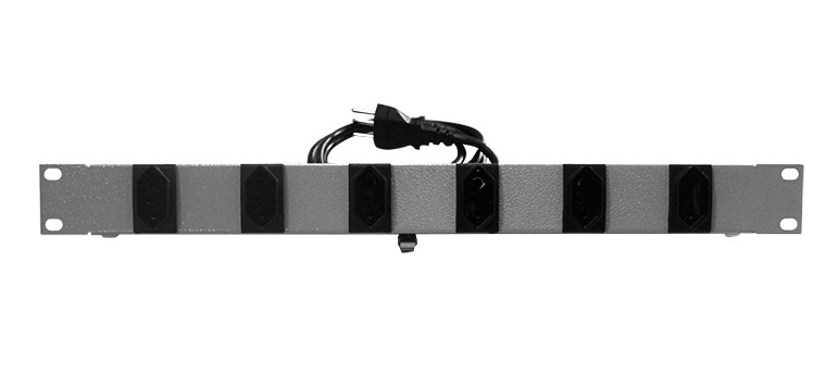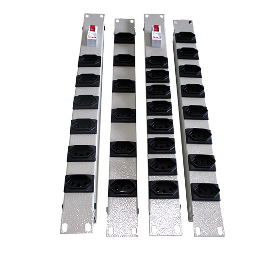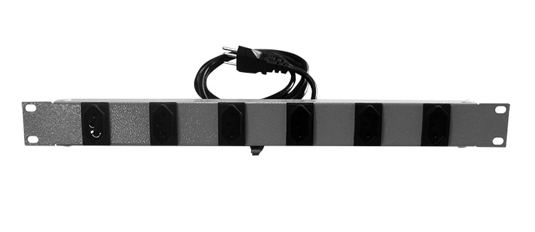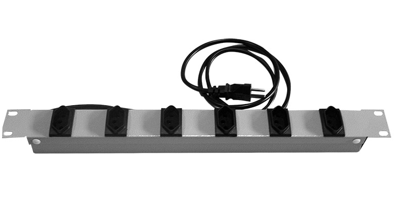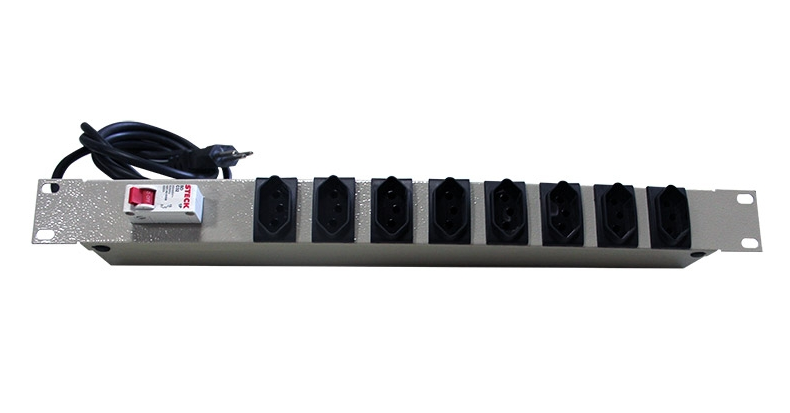 Réguas de tomada para fixação em racks ou gabinetes padrão 19", utilizada para conexão elétrica aterrada de equipamentos.
